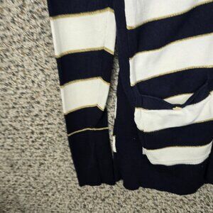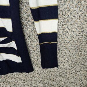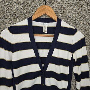 Cache Cardigan Womens XS Navy Blue Striped Snap Button Casual Ladies