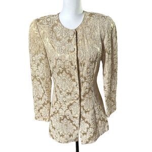 Cache Carmen Marc Valvo Gold Jacquard Jacket Evening Formal Long Sleeve Sz 8