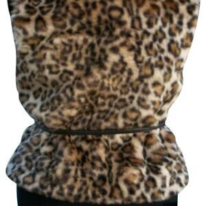 Cache Cheetah Faux FUR Vest pLeather Trim + Belt Lined Top New Animal NWT $178