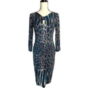 Cache Cheetah Print Fitted Midi Dress