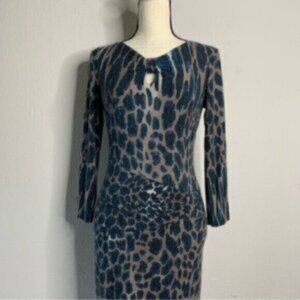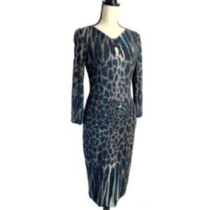 Experience unparalleled elegance with this fitted, midi length cocktail dress. It showcases an attractive leopard print patterns, designed with a ruched side for an appealing look. Its 3/4 sleeve gives it a perfect blend of style and sophistication. Ideal for making a stylish statement at any party or event