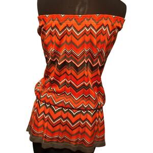 Cache Chevron Peek A Boo Knit Stretch Strapless Top Dress Drawstring Waist