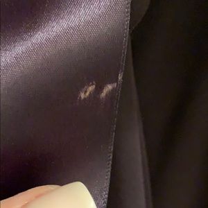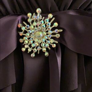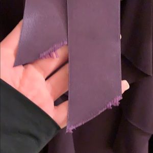 Minor mark on front ribbon and minor fraying on bottoms of ribbon, purple/eggplant color, front broach is removable
