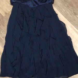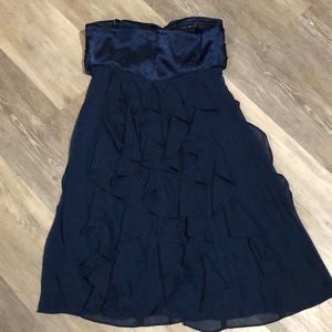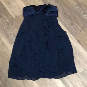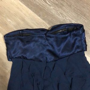 Size 4 Royal Blue Cocktail Dress by Cache. This strapless is a beauty. Perfect for any event. It has a beautiful waterfall overlay. The overall length is 30.5” The pit to pit is 15.5”. It’s fully lined. It’s 100% Polyester.