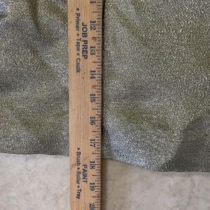 Cache Cocktail Party Blouse Size XL women's Gold metallic Ruffle shoulders side zip with peplum hem lined smocked back.