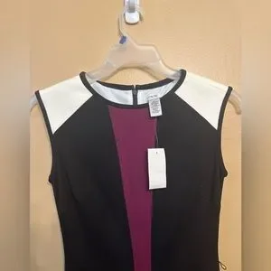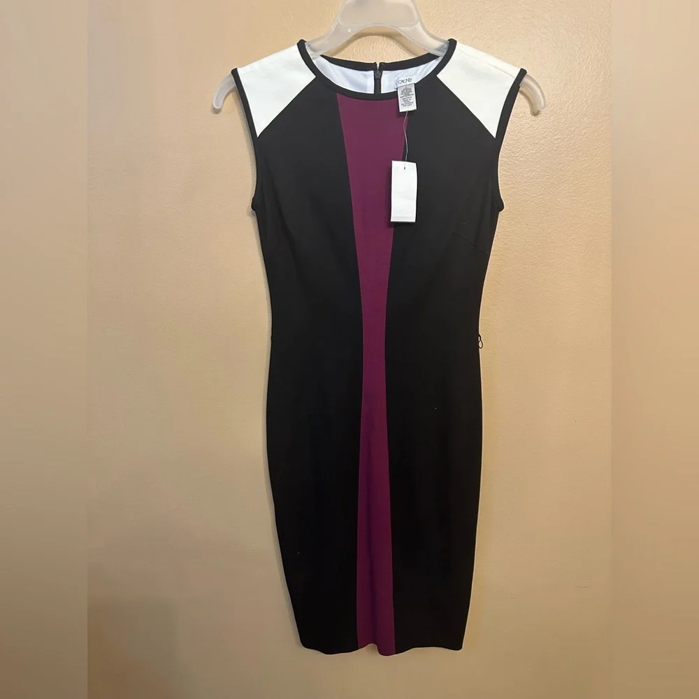 Cache Color Block Sleeveless Belted Dress Black and purple with off white shoulders Zipper and clasp to back Lined Great condition Size 2