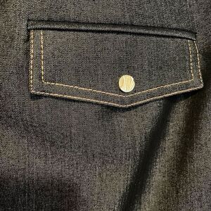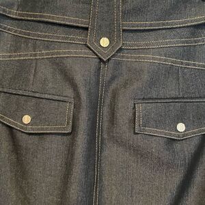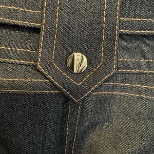 Excellent condition. RN# 74578. No stains or holes clean home! Big gold buckle and gold button head accents! The color is a dark grayish blue?! Looks like reflective black, gray, blue jean colors?! The very last picture is a close up! Women’s size 10. Excellent quality really beautiful! Sleek and stylish!