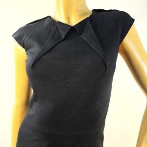 Cache Contour Collection Sz 4 Sleeveless Black Dress Pleated Pencil Stretch