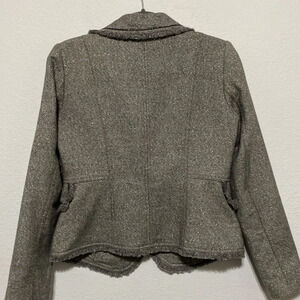 Cache Cotton Wool Linen Gray Metallic Asymmetrical Blazer Jacket Size M