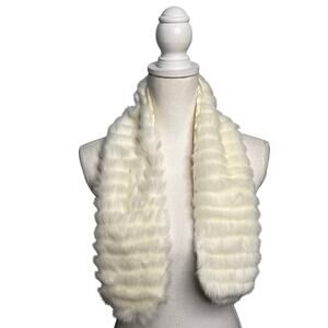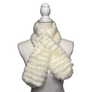 Cache Cream Faux Fur Neck Pull Through Wrap Winter Scarf Satin Lining