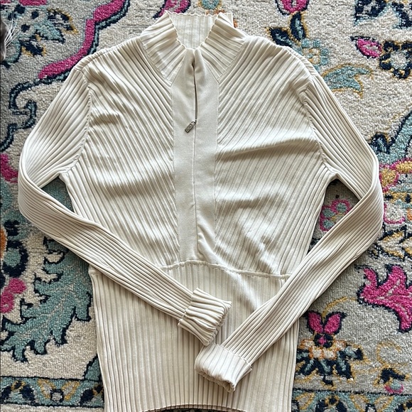 Elegant ribbed design. Long sleeves. High neckline. Perfect for layering.