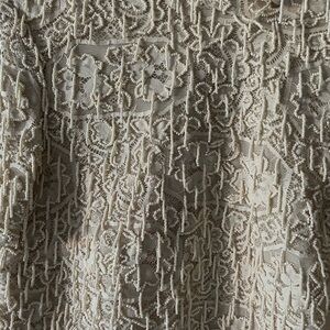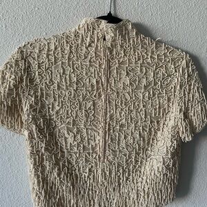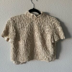 Chic cream crop top with intricate texture. Stylish and versatile for any wardrobe.