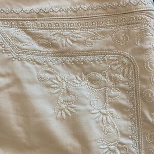 Chic cream/ivory colored mini skirt with button-front design. Features delicate embroidery. Perfect for versatile styling.