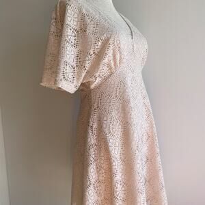 Cache Crochet Batwing Mini Dress Womens Size XS Ivory Paris Feminine Boho Flowy