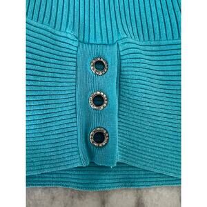 Cache- Cyan Blue Ribbed Knit Pullover Sweater Rhinestones Size Large