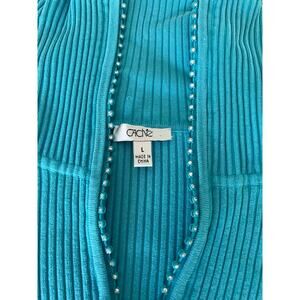 Cache- Cyan Blue Ribbed Knit Pullover Sweater Rhinestones Size Large