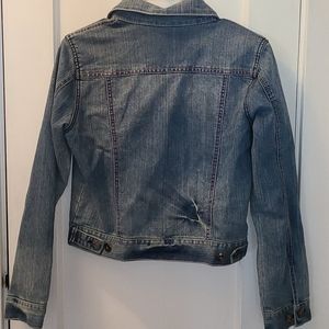 Soft denim jacket from Cache. Size has been cut out, but I would estimate that it is a M.