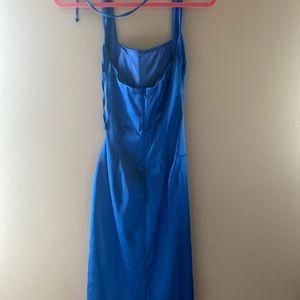 Satin electric blue cache dress worn once! Size 4 with cups inside dress. Halter top and knee length