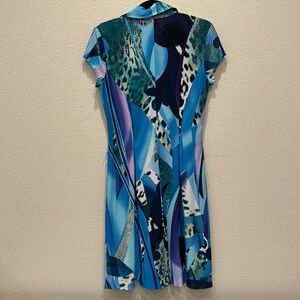 Amazing Cache printed dress with cross detail at chest. Animal print and 90's vibes!