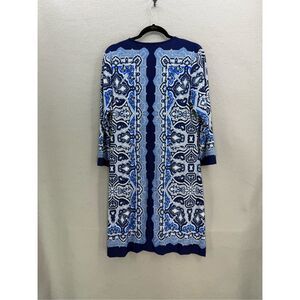 Cache Dress Blue White Print 3/4 Sleeve Sheath Dress Women's XL