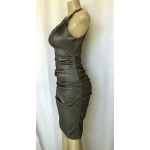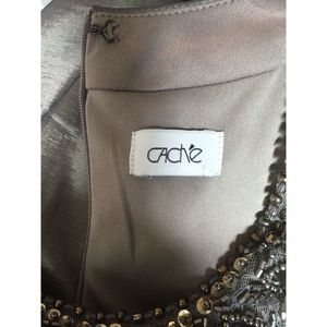 Cache Dress Metallic Ruched Sheath Embellish Neck