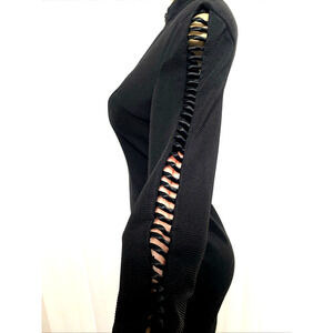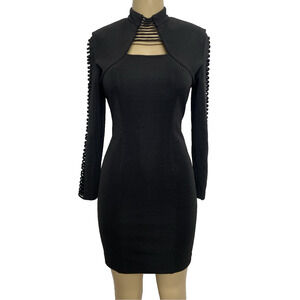 Cache Dress Sheath Textured Black Mini Cut Out Long Sleeve 8 S Vintage