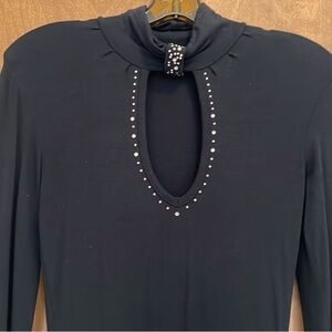FABULOUS black mock turtleneck from Cache. Keyhole cutout on front with bronze embellishments around. In great condition.
