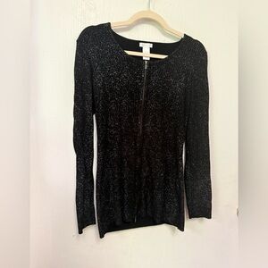 Cache Elegant Glitter Speckled Black Knit Zip Sweater