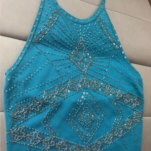 This stunning blue top features intricate embellishments, perfect for adding a touch of elegance to any outfit. Ideal for both casual and formal occasions.
