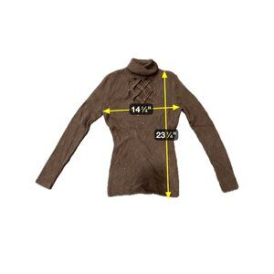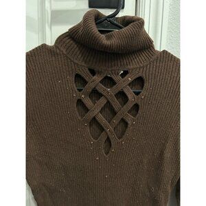 Cache Embellished Turtleneck Pullover Sweater Brown Sz Medium Cutout Ribbed Knit