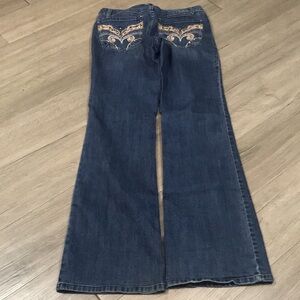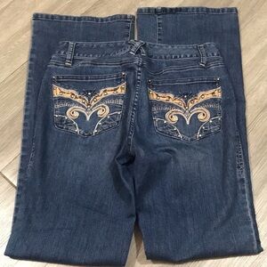 Cache Embroidered Embellished Pocket Medium Wash Flare Leg Jeans size 8