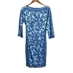 Cache Embroidered Lace MIDI Sheath Dress Size 6 Blue Occasion Party Feminine