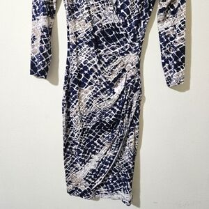 excellent condition size XS v neckline long sleeves hits above knee abstract pattern