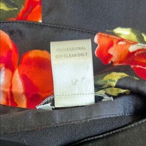 This sophisticated blouse by Cache is crafted from a sheer sections at the collar and sleeves, highlighted by a striking red floral design. The long sleeves and notched collar enhance its elegant appeal, making it ideal for both casual and formal settings.
