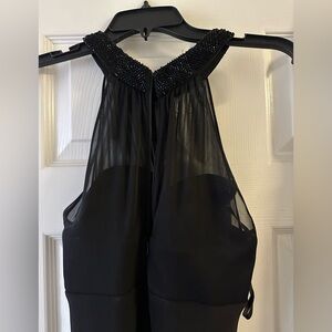 Cache Formal Black dress. Beaded neck; floor length; worn once. Size 4.