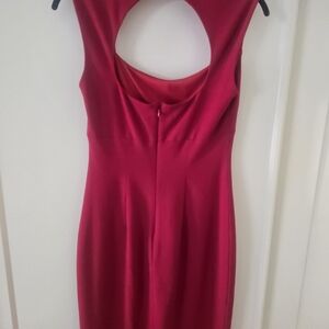 Figure-skimming sheath with a bold open back. Clean lines and a fitted silhouette. Rich fuchsia hue makes a striking statement. Ideal for cocktail nights and date evenings.