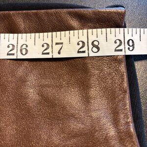 Elevate your wardrobe with these chic Cache genuine leather pants. Featuring brown leather front panels, black stretch fabric back, and a sleek straight leg fit. Perfect for night out, business casual, or high-fashion styling.