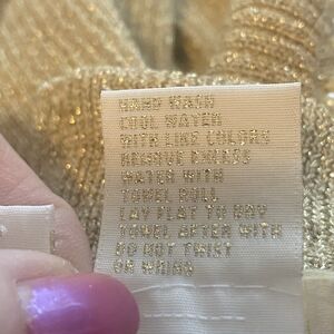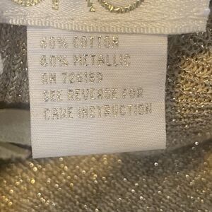 • Sleeve: 22.5"60% cotton / 40% metallic. Hand wash. No noted flaws.
