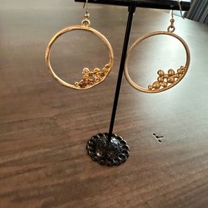Chic and modern hoop earrings by Cache. Features matte gold-tone open circles with clustered amber and bronze beads along the bottom. Lightweight and stylish—perfect for elevating both casual and dressy looks.