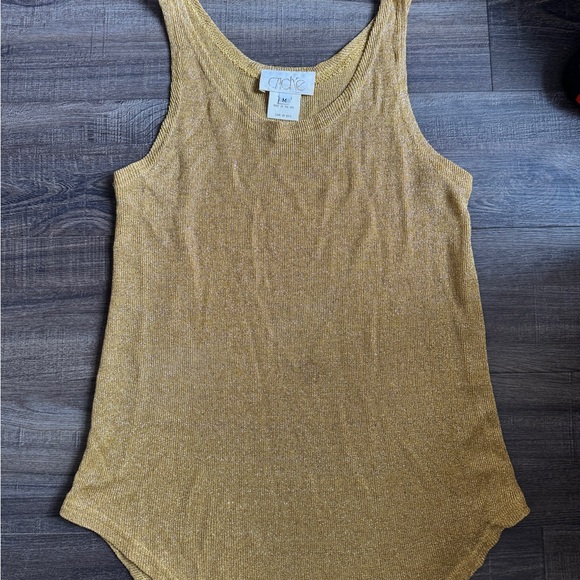 Elegant gold tank top by Cache. Perfect for any occasion.