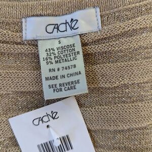 Description: Cache Gold Top SM NWT, lovely u-neckline, metallic thread, bodycon, deadstock