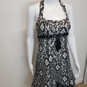 Cache Halter Lace Tulle Dress Size 6 Black Ivory Asymmetric Goth Prom Wedding