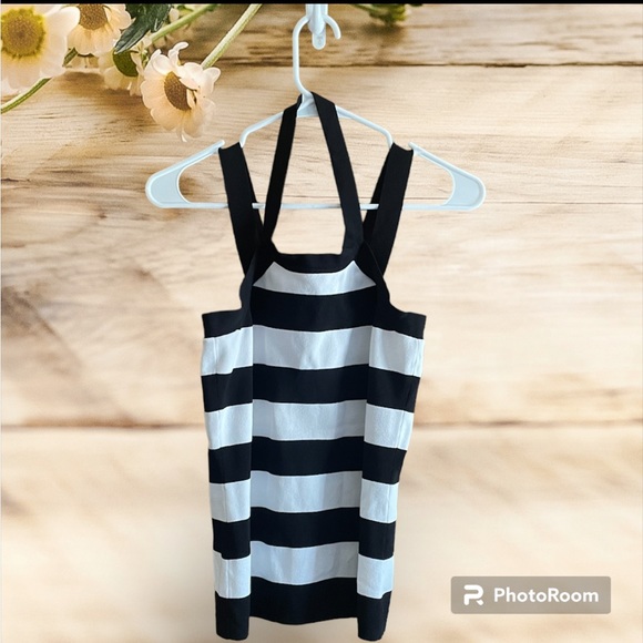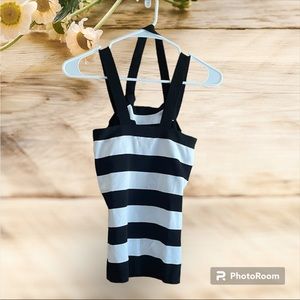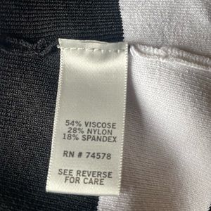 Like new, excellent condition, stretchy form fitting material, black and white stripes, no stains, no rips, no snags, from smoke free home.