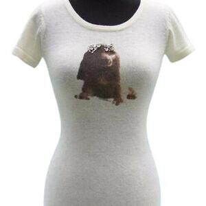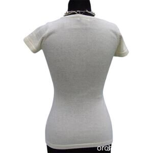 Cache Ivory Rhinestone Cashmere Blend Puppy Dog Top New Stretch NWT $88 Sz S