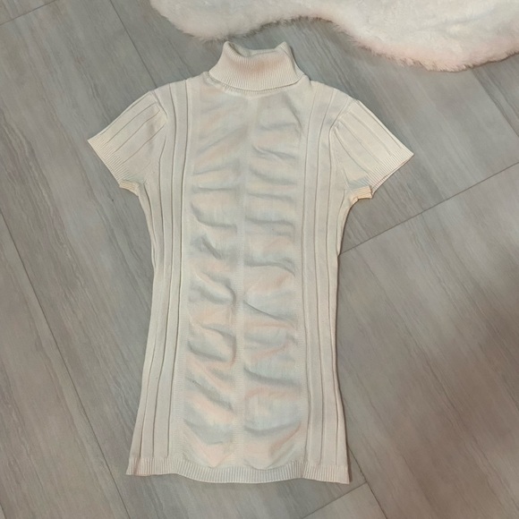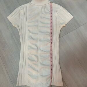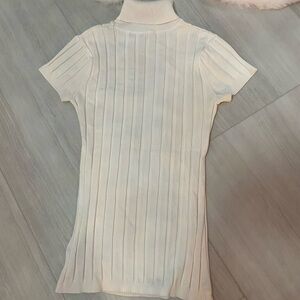 Elegant ivory ribbed knit top by Cache. Soft and stylish design.