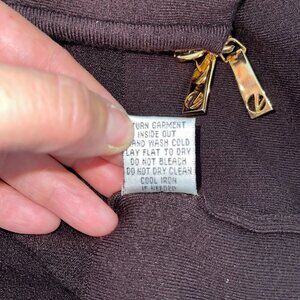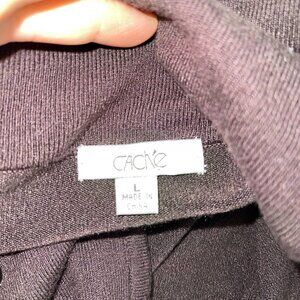 Cache Jacket Large L Womens Vintage Floral Knit Zipper Front Brown Gold Metallic