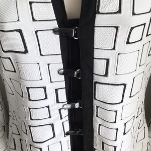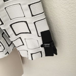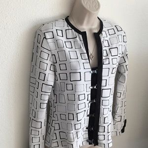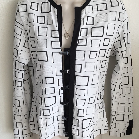 Great looking Top/Jacket! Has lots of stretch to it! Attractive front closures. There are 2 tiny little pulls (See photo in which a zoomed in on them) that to me, are not noticeable enough for concern but selling cheap because of them! If this doesn't sell soon I will be keeping it!