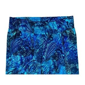Cache Jersey Knit Wide Leg Pants Size L High Waist Blue Paisley Boho Beachy