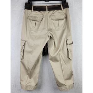 Cache Khaki Cargo Capri Brown Bohemian Scarf Belt Sz 8 Gold Button Decor Hippie