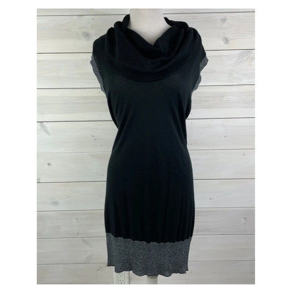 Cache LUXE Women Black Cowl Neck Sleeveless Sweater Dress Size S Small Tunic.